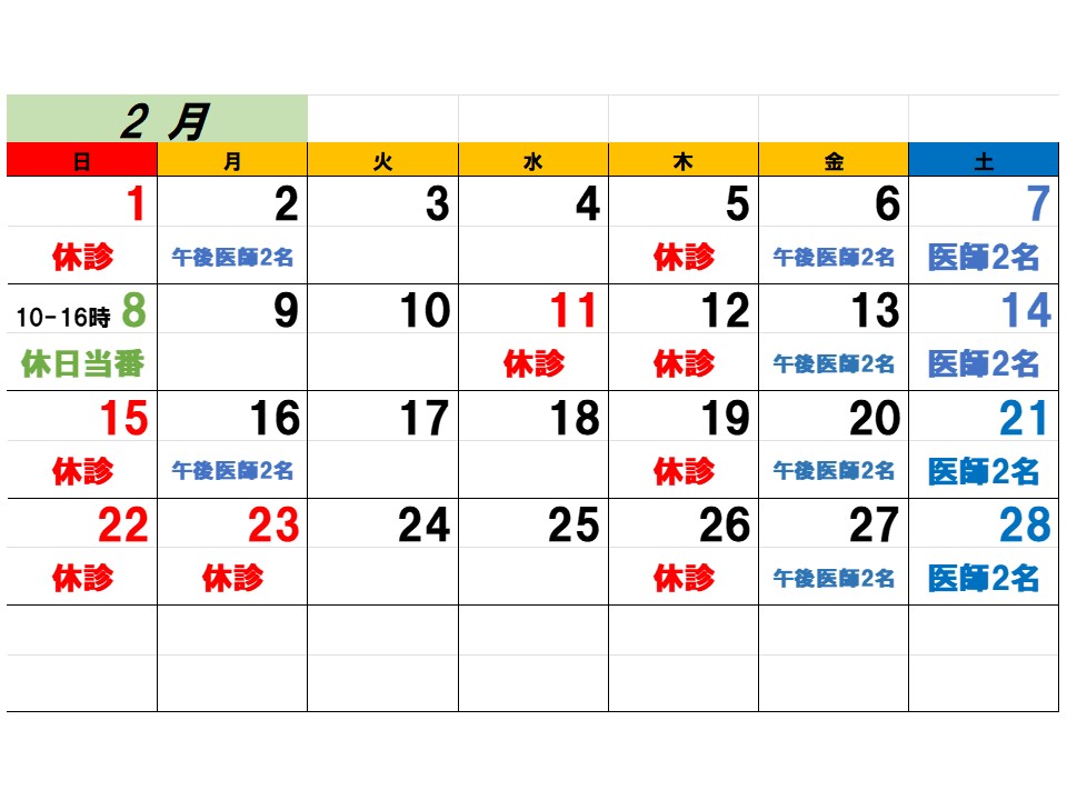 2月の診療カレンダー